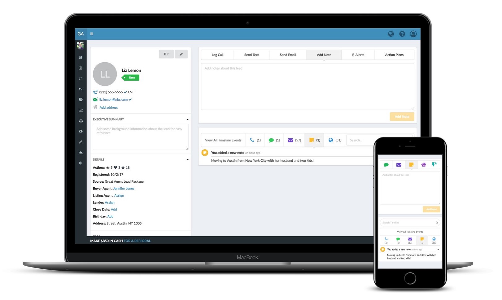 You can easily log notes in the CRM using the Notes tab on the Lead Details page.