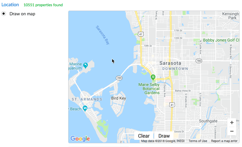 You can customize the location of properties sent within a lead's E-Alerts by using the Draw on Map functionality within the Add/Edit E-Alert section. This gives you the flexibility the more specifically define a location beyond using things like city names and zip codes.