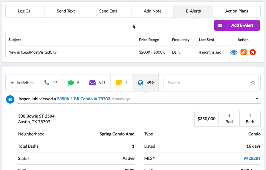 We highly advise editing E-Alerts after communicating with leads and learning exactly what they are looking for in a new home. Doing so is easy within the Lead Details page.