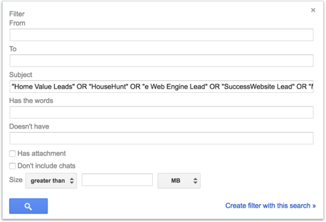 Some of Great Agent's 50+ supported sources don't send emails from a universal email address when notifying you about New Leads. These sources will need to be filtered by email their "Subject" rather than the 'From' email address. The sources that require this special 'Subject' filter are: