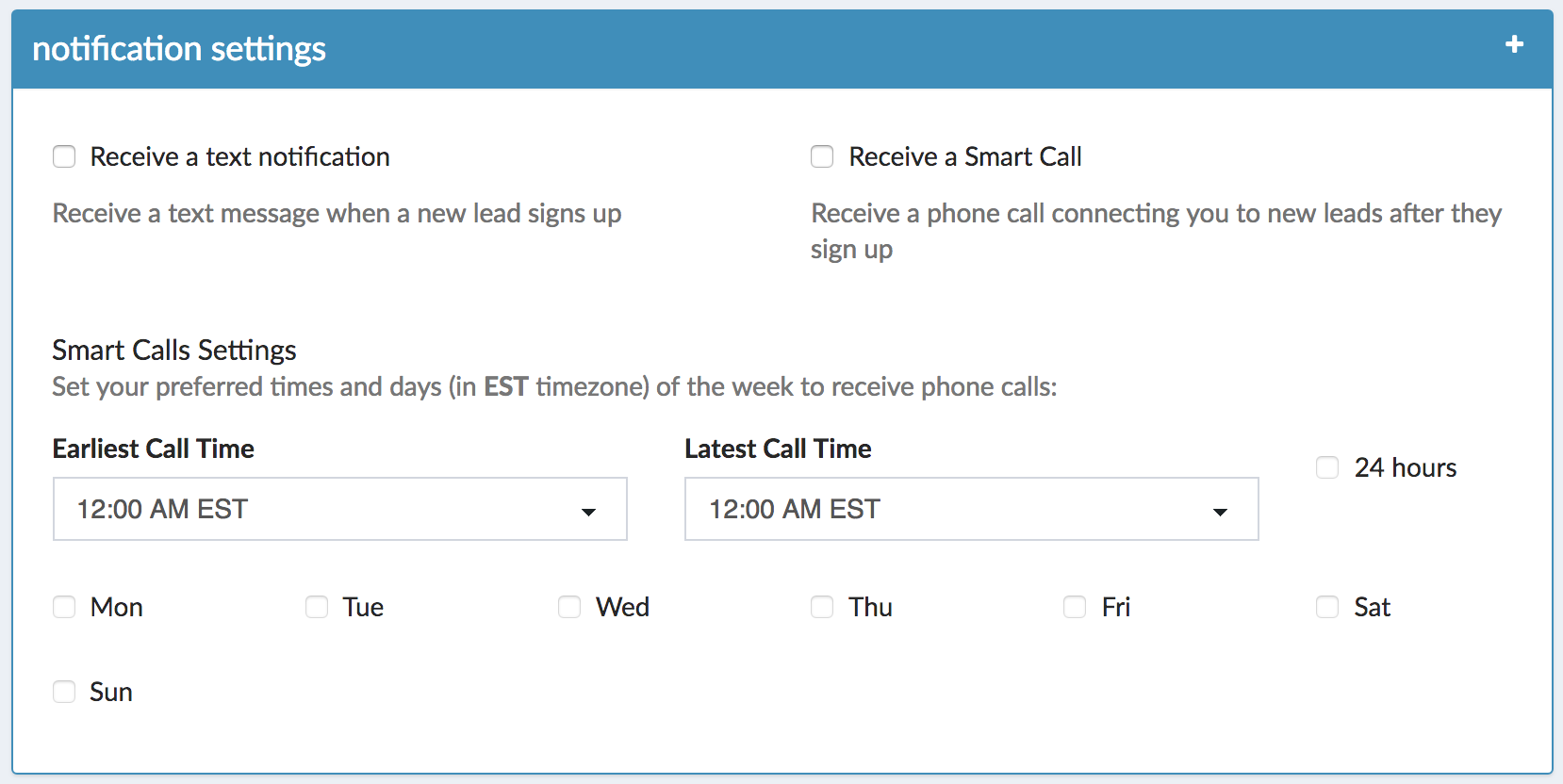 Your notification settings determine how and when you will be alerted when a new lead is assigned to you.