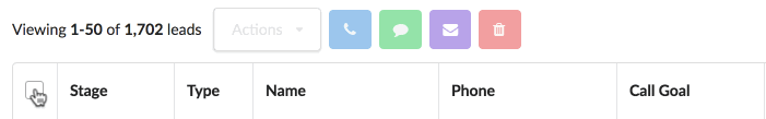 You can perform several mass actions directly from the lead command center. To do so, you first want to select one or more leads.