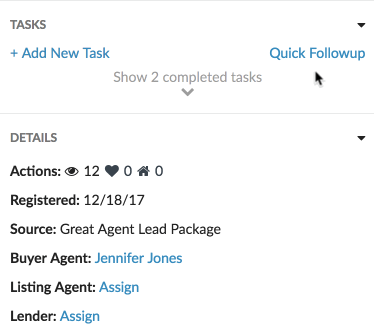 Instead of adding a new task via the Add Task modal, you can always use the Quick Followup shortcut to quickly set a task to follow up with a lead.