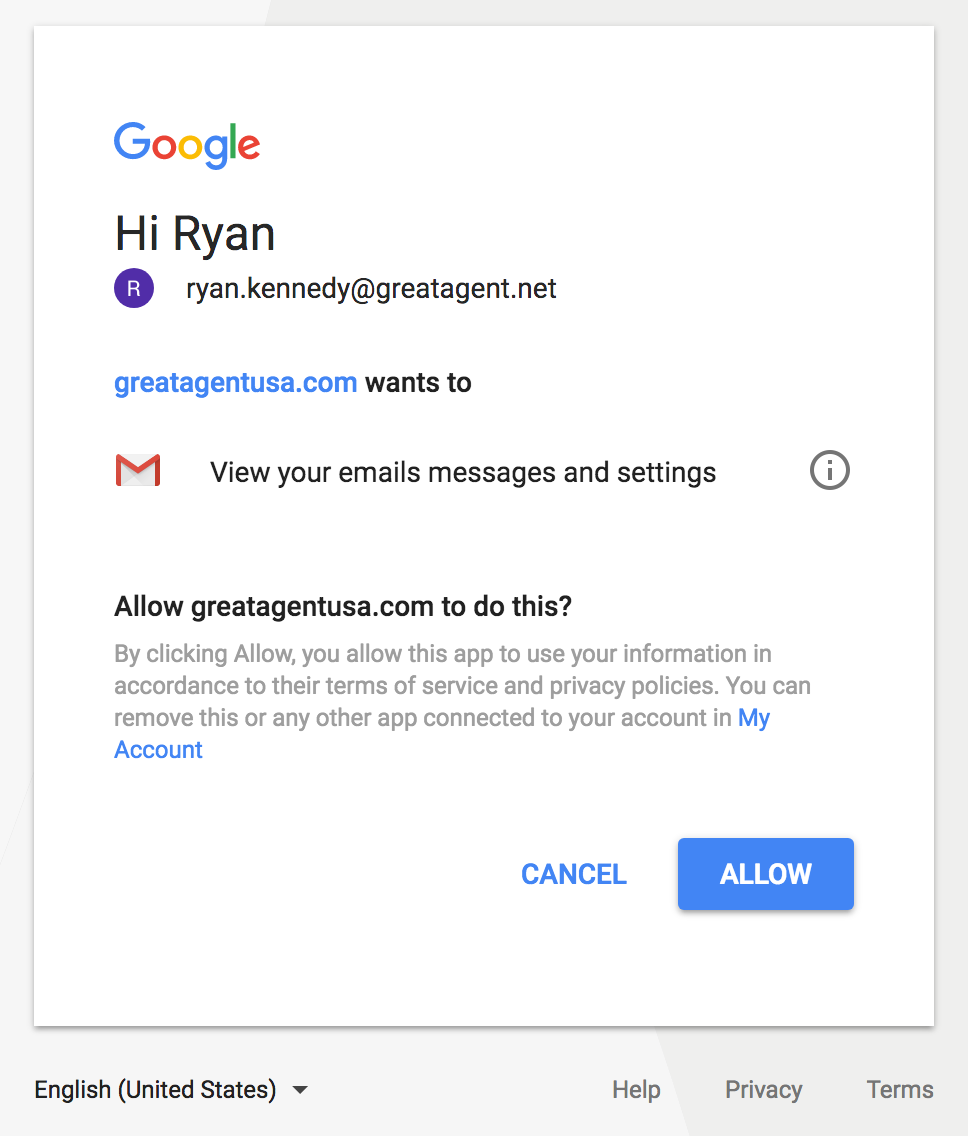 By authorizing your Gmail account, Great Agent is able to 'listen to' emails that are sent between your associated Gmail account and any leads that are in the Great Agent CRM.