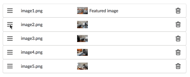 You can upload an unlimited number of photos for your listing, which will be displayed as a gallery on the home details page. The first photo that you upload will be the default "Featured Image" and appear as the primary preview for the property. You can always modify the order of all images, including the featured image, by dragging and dropping the order of the images.