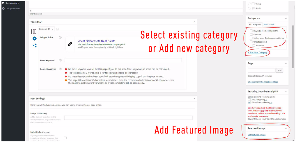 - Don’t forget to select Categories or create a new one