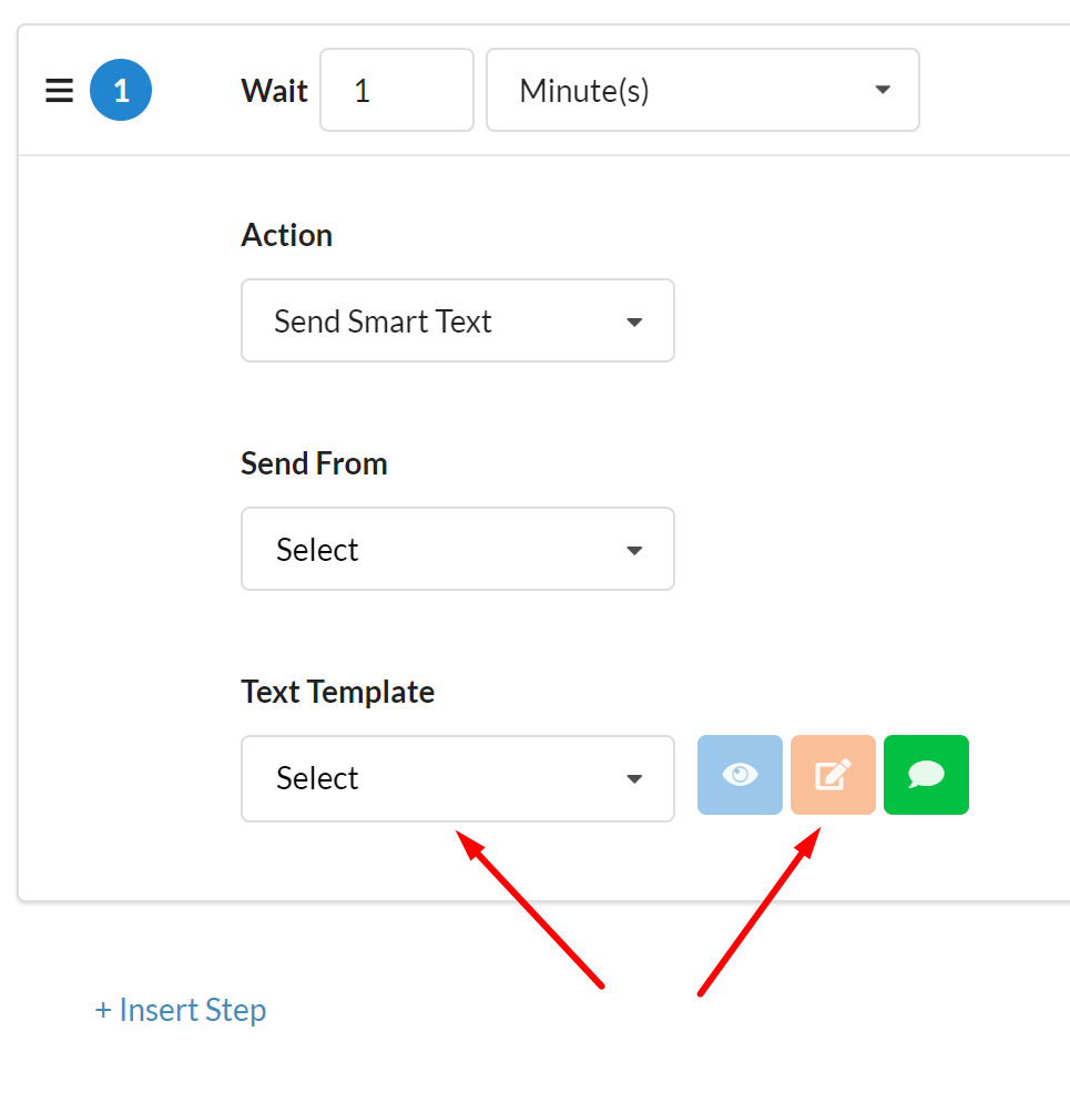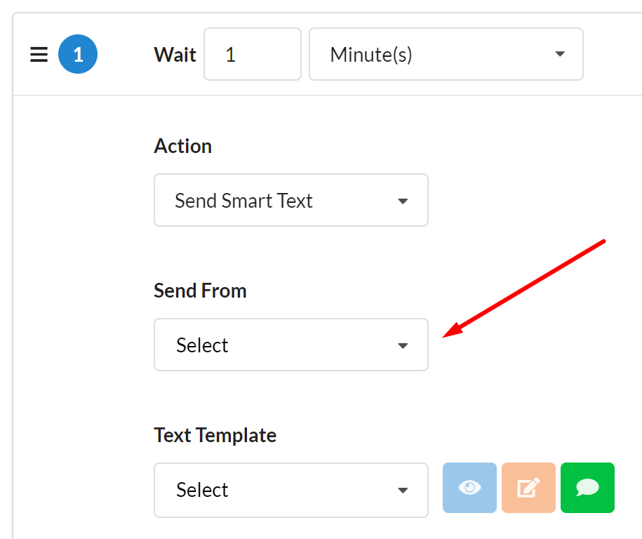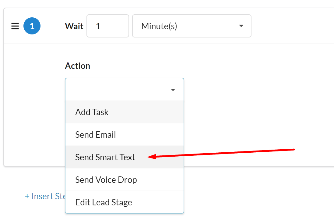 While editing a step of the Action Plan, select 'Send Smart Text' from the drop-down list of Actions.