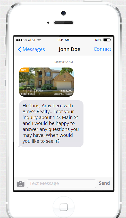 With enhanced property images, a new feature releasing on or before November 18, 2018, the agent can maximize their number of appointments by texting the consumer a hyper-personalized text message. This message doesn't contain a URL, since most consumers perceive links as potentially dangerous.