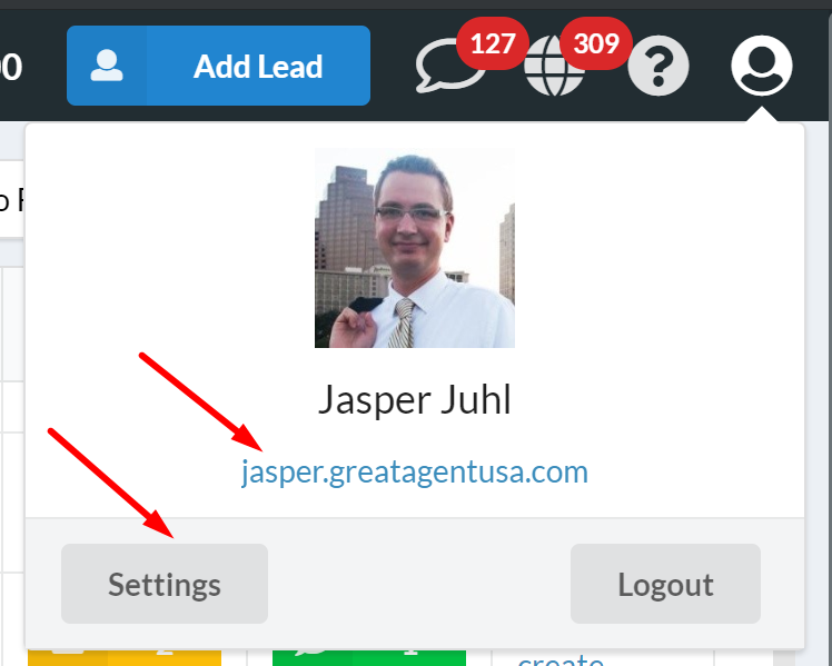 Clicking on this icon now shows the link to your personal page within your company website and a button leading to account settings now has the name... yes, "Settings".