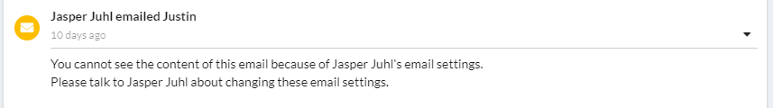 This option is defaulted to the 'off' position for all users in the interest of privacy. When this setting is in the 'off' position, any other user with access to one of your leads will see a message similar to this in place of your email text: