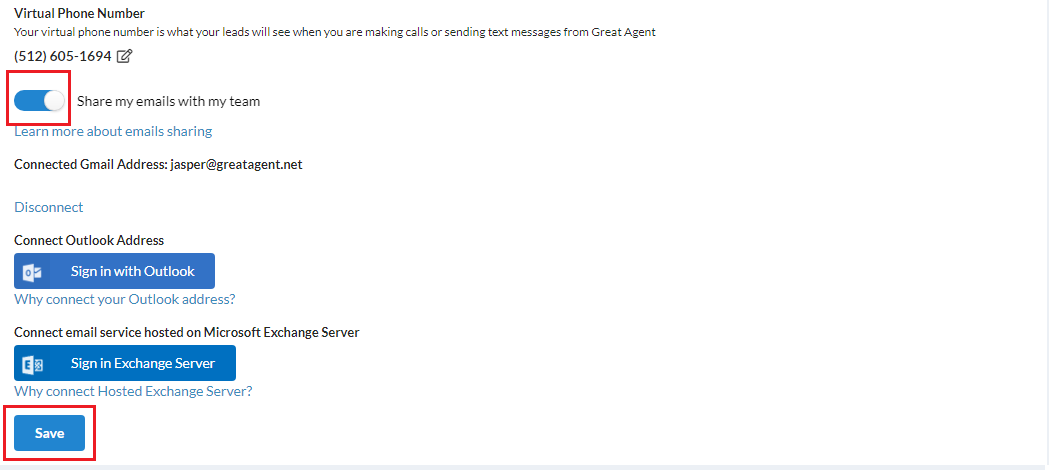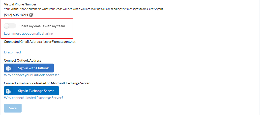 You may have noticed this new switch next to your virtual number and your connected emails in your Settings! This setting allows you to decide whether you want your emails to your leads to be visible to others that have access to that lead.